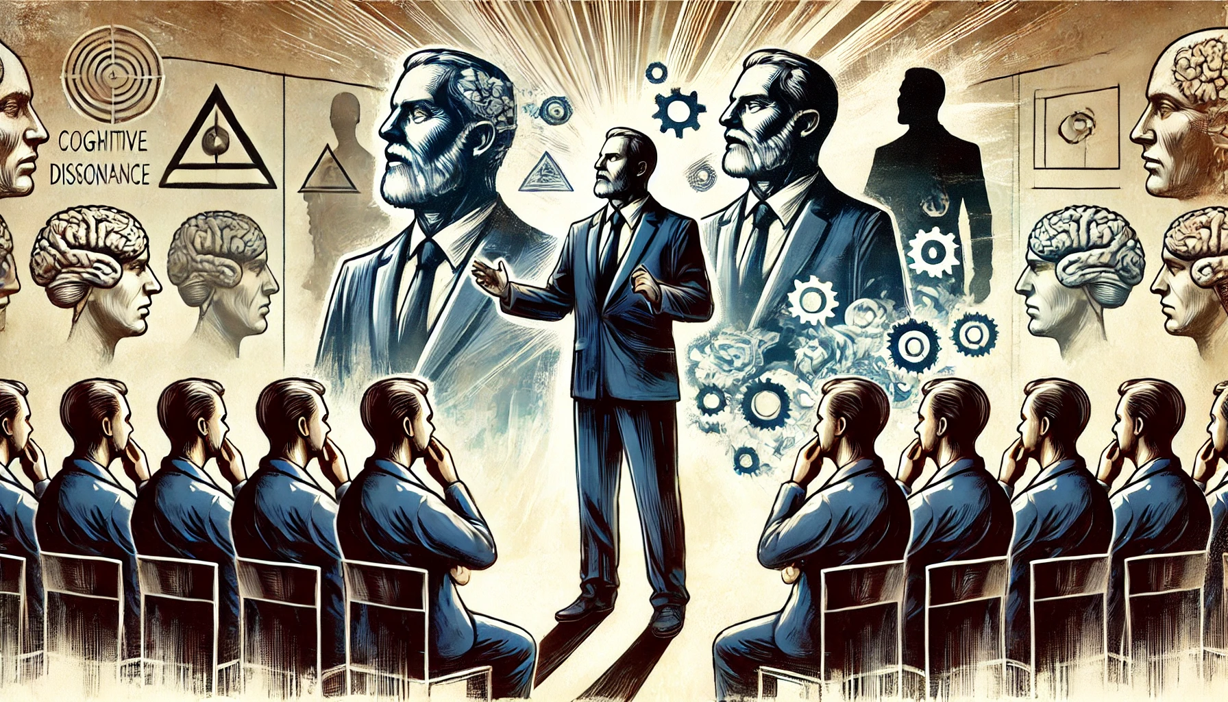 레온 페스팅거의 인지 부조화 이론은 또 다른 이해의 층을 제공한다. 인지 부조화는 사람들이 모순된 신념을 가지거나 자신이 인식하는 것과 충돌하는 행동을 할 때 경험하는 불편함이다. 권력자들은 종종 이러한 부조화를 줄이기 위해 거짓말을 하며, 자신의 행동과 신념을 일치시키기 위해 속임수를 합리화한다. 예를 들어, 지도자는 거짓말이 더 큰 이익을 위해 필요하다고 스스로를 설득함으로써 거짓말을 정당화할 수 있다.