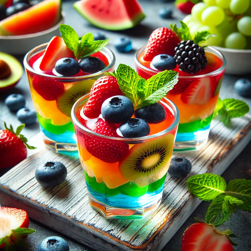 이 과일 젤리는 원래 보드카를 넣어 만드는 '보드카 젤리샷'에서 아이디어를 얻었어요. 하지만 술 대신 오렌지 주스를 사용해 모든 연령대가 즐길 수 있는 디저트로 만들어봤죠.