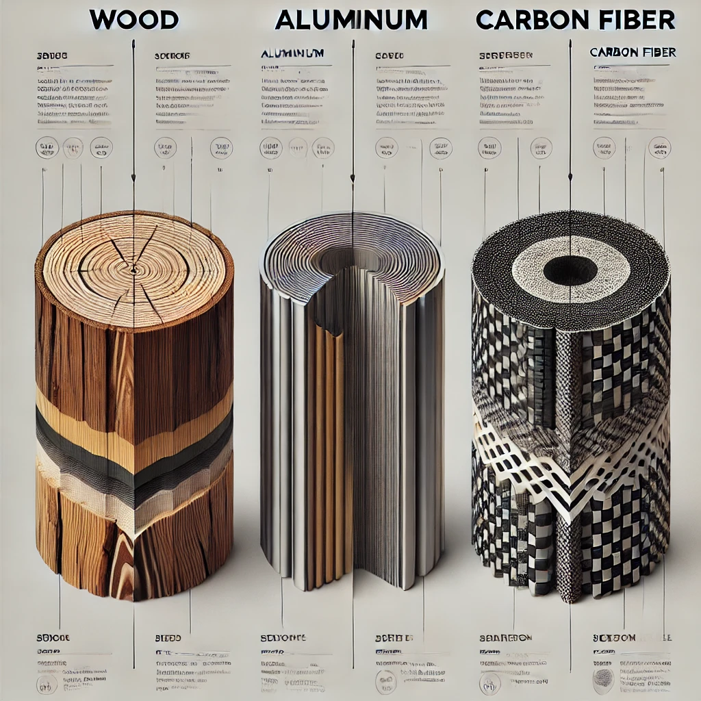 - 카본 화살: 카본 섬유를 특수 수지와 함께 높은 압력과 온도에서 성형합니다.