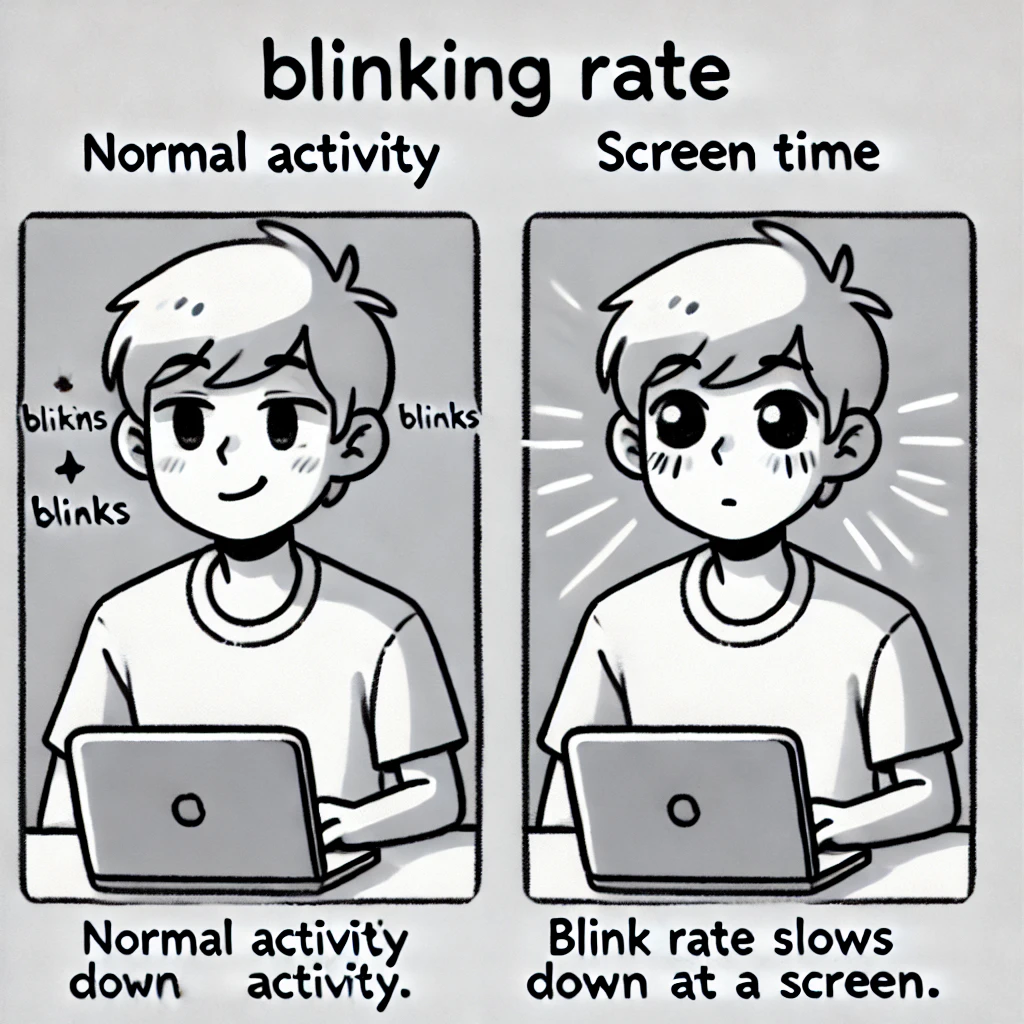 연구에 따르면, 우리는 디지털 기기를 사용할 때 평소보다 눈을 덜 깜박입니다. 정상적으로는 1분에 15-20번 깜박이는데, 스마트폰을 볼 때는 5-10번으로 줄어든다고 합니다. 이것은 마치 눈에게 "자, 이제부터 물 없이 살아남아 봐!"라고 말하는 것과 같습니다.