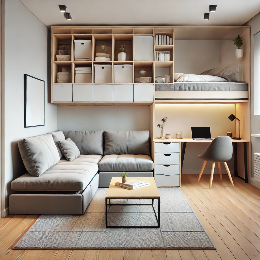 - 수납공간 최대화: 벽면 선반, 침대 밑 수납함, 다용도 수납 가구 등을 활용하여 정리정돈을 쉽게 하세요.