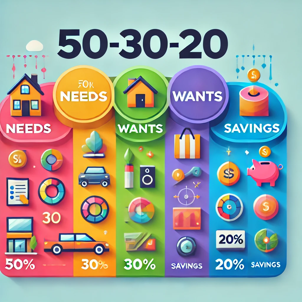 예산을 세우는 방법은 다양하지만, 초보자에게 추천하는 방법은 '50-30-20 법칙'입니다. 이는 수입을 다음과 같이 나누는 것을 말합니다:
